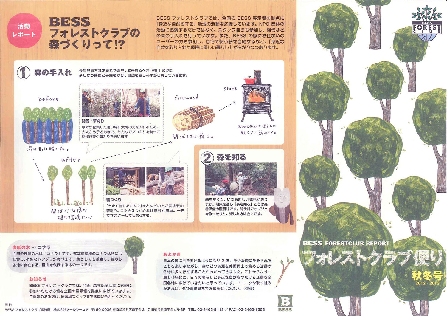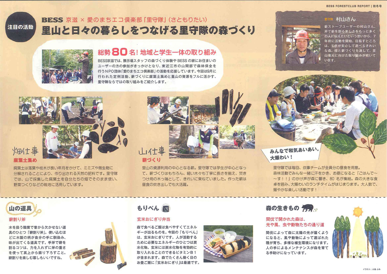 TOPページ ニュース&トピック BESSフォレストクラブ便り BESSフォレストクラブ便り 2013.01.04 あけましておめでとうございます。 今年も里守隊をよろしくおねがいします。 さて、2011年8月に里守体験してくださったBESS京滋さん。 (体験レポートはこちら) 今年度は、愛のまちエコ倶楽部の会員として、活動を支援してくださっています。 そして今回、 「BESSフォレストクラブ便り」の中で、 里守隊活動をかわいく楽しくご紹介いただきました! フォレストクラブ便り中面・表面 BESSさんありがとうございました! カテゴリー: その他 BACK