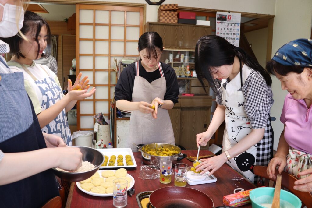 愛東、永源寺地区の民泊家庭さん4件の家に、学生3~4人ずつでお邪魔させてもらい、簡単な収穫体験後、昼食づくり。